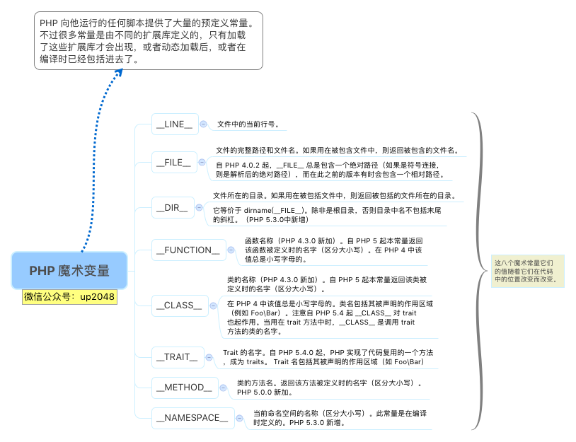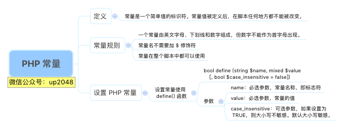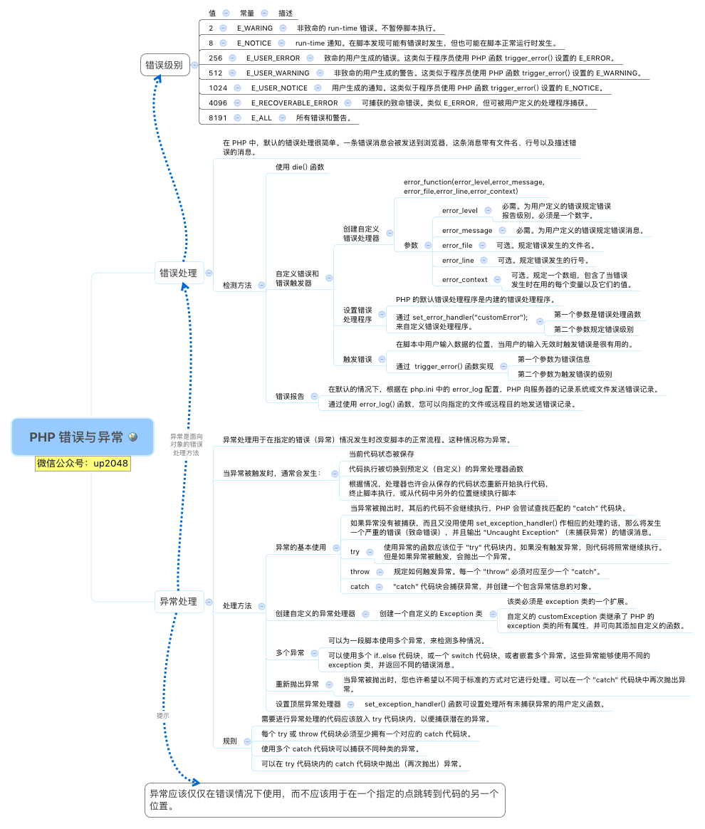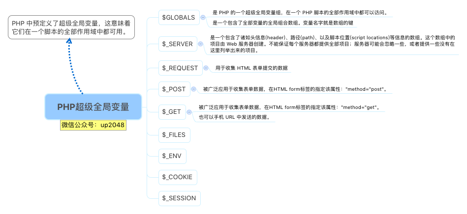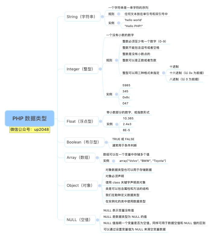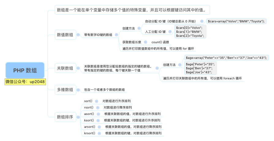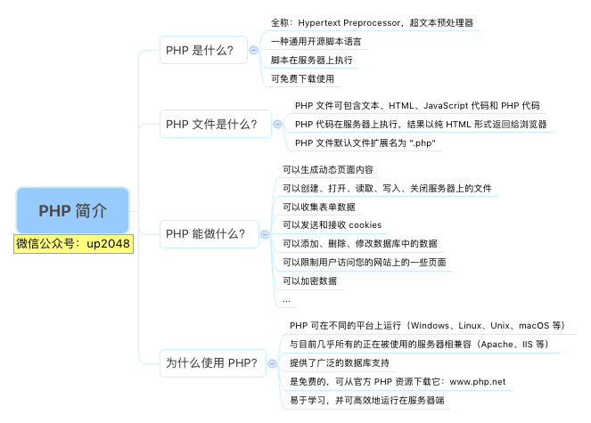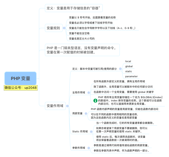 安装好PHP Extension Pack插件,敲敲小Demo,顺便复习一下PHP基础知识,温故知新,转载一份思维导图如下,转自十五张思维导图带你快速学习PHP语言基础